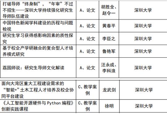 接《關于2021年廣東省學位與研究生教育學會優秀教育成果獎的通知》,經專家評審、面向社會公示和評獎委員會審核通過,2021年度我校共有7項成果獲廣東省學位與研究生教育學會優秀教育成果獎,獲獎數量與中山大學并列全省第1位。獲獎名單詳情如下: