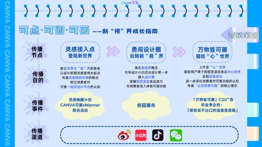 策劃案捕捉當前顏值經濟的趨勢,將之轉化為對視覺表達的深度追求,結合消費者在技能上的不足與產品的易用性優勢,提出了“新視界成長指南”這一主題概念,通過“可點”、“可圈”、“可畫”三個層次的藝術創作階段,希望傳達“讓世界更可畫”的核心理念。