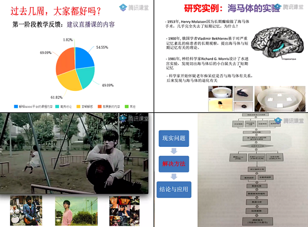 4月1日,第二場線上教學觀摩課是由管理學院文珊珊老師主講的《社會科學方法論》。課堂伊始,文老師對進行一個月的網課做了第一階段的教學調查,對同學們線上學習存在的問題和線上學習的方法給予了富有針對性的建議。文老師強調,同學們需要培養科學化的學術思維。首先以海馬體實驗的例子帶同學們進入了問題研究的視角,文老師不斷根據所講內容對同學們進行提問,大家都踴躍的在討論區進行回答。之后文老師通過播放一首懷舊歌曲,調動學生們的上課積極性,從而提出了研究問題:年少時的歌曲,對人的影響更大嗎?同學們都在評論區發表著自己的觀點,最后文老師進行總結,告訴大家研究問題的提出可以從日常的經驗,興趣出發。