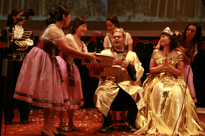 文藝匯演在入門一、二班表演的《纖夫的愛》中拉開了帷幕,學生們燦爛的笑容、歡快的舞步特別是兩位“土耳其媒婆”出色的表演,贏得在場的觀眾陣陣熱烈掌聲。在商務班《牛郎與織女》中,演員們運用不同的方式來闡釋留學生對留學生活的細致觀察,情節緊湊、語言生動。來自剛果的學生福蘭克表演了節奏感十足的街舞,伴隨著強勁的音樂翻滾、倒立、彈跳,喝彩叫好聲不絕于耳。中級一班自編自演的話劇《國王的新衣》,演員分別來自俄羅斯、韓國、日本、印尼、巴西、土耳其、菲律賓等十個國家,別出心裁,特別是兩位來自捷克和美國的“金發騙子”精湛的演技以及他們和“加拿大國王”生動的對手戲,生動別致的情節設置、詼諧的對話,給現場的觀眾留下了深刻印象,把整場演出的歡樂氣氛推向高潮,現場成了歡樂的海洋。