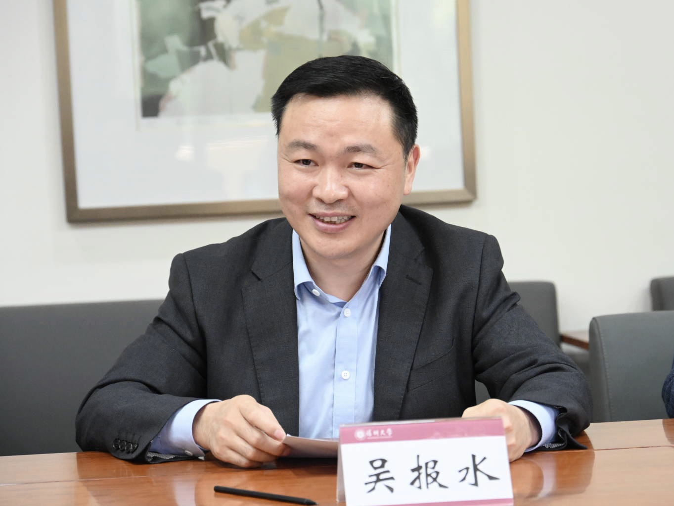 為全面貫徹落實黨的二十大精神,推動“教育+人才”工作深度融合,助力加快建設教育強市、人才強市,2024年1月19日,深圳市人才集團有限公司一行來到深圳大學調研。深圳大學校長毛軍發、黨委副書記吳報水會見深圳市人才集團黨委書記、董事長高大偉,副總經理張蕾、吳堅斌,雙方在粵海校區匯元樓301會議室舉行座談會,吳報水主持會議。