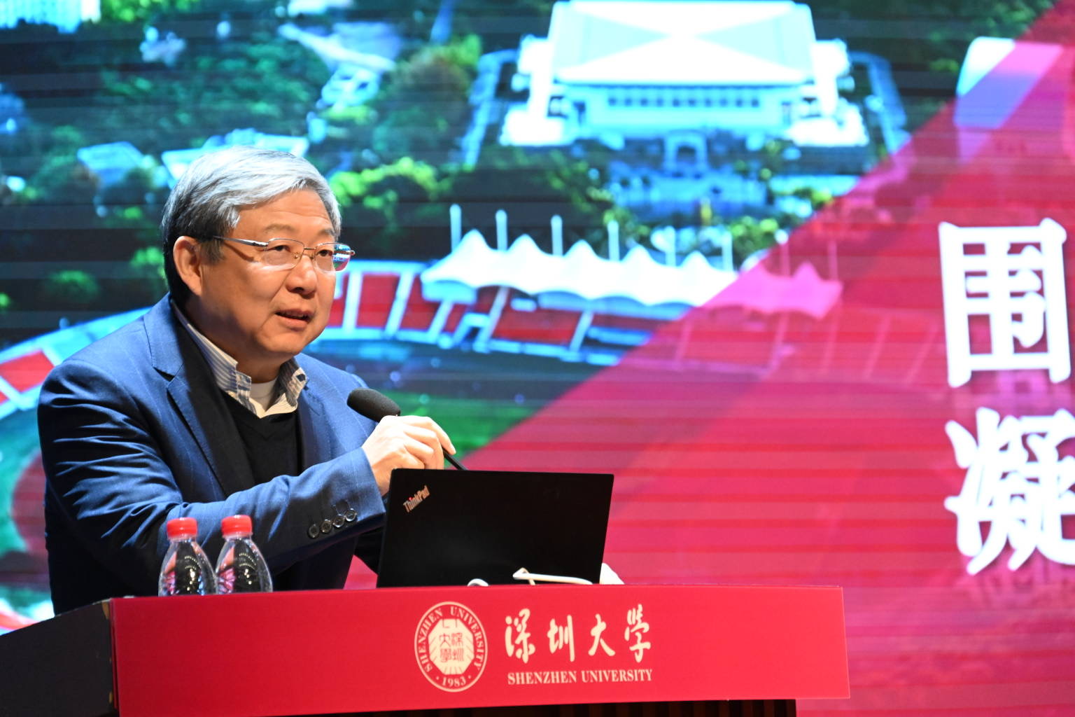 校長毛軍發以“2023十大標志性工作進展”總結2023年深圳大學在人才培育、學科建設、國際交流、基礎建設、學生工作、重點工程、社會服務和校慶工作等方面的成果。他指出,2023年,深圳大學學科高峰加速崛起,師資水平再上臺階,教育教學提質增效,創新能力持續提升,國際合作深化拓展,學生工作卓有成效,重點工程高效推進,社會服務走深走實,“1+3+X”專項工程實施有效,并能清晰認知總結問題和不足。