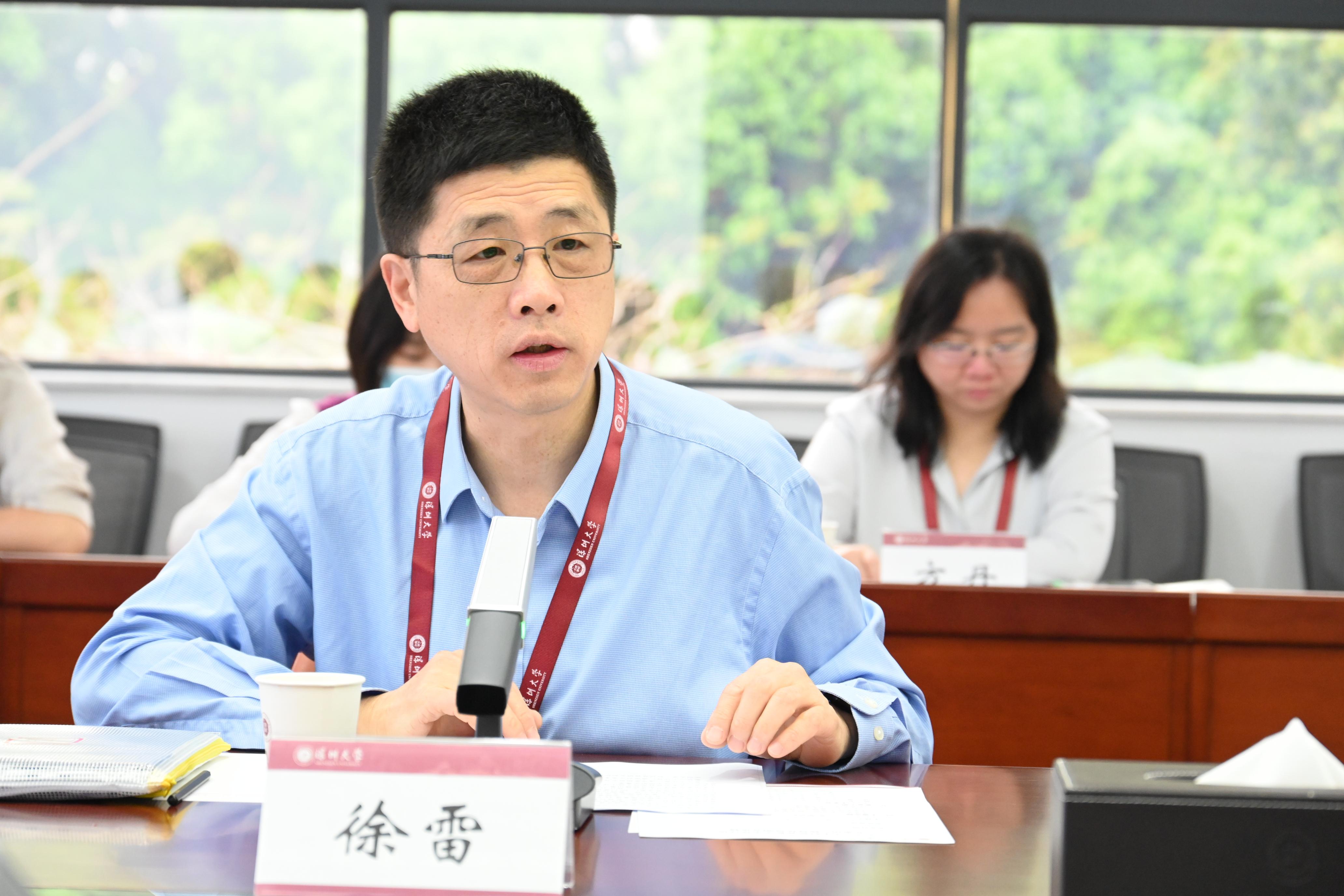 徐雷介紹入校專家成員,并對深圳大學線上評估工作整體情況進行說明。他表示,線上考察專家組一行29人自3月11日線上評估啟動以來,對深圳大學開展了為期18天的線上評估工作。考察期間,專家組多次召開工作會議,審讀1+3+3報告、教學質量報告等有關材料,開展線上聽課看課,進行深度訪談,調閱相關資料,通過多種方式,查實凝練、匯總梳理出問題清單。專家組較好完成了線上評估階段任務,基本完成了職能部門和二級學院的全覆蓋。