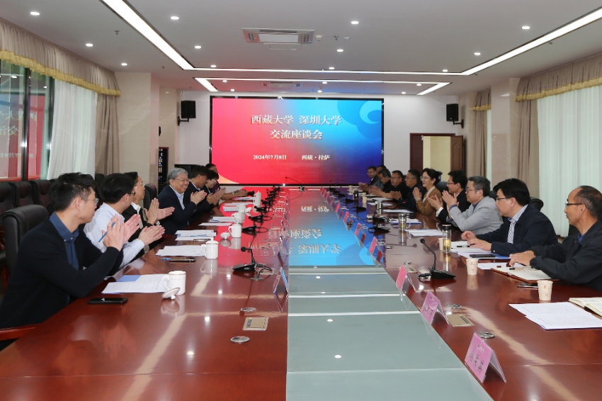7月8日上午,李清泉一行來到西藏大學(xué),就兩校未來合作方向開展座談。西藏自治區(qū)人大常委會(huì)副主任、西藏大學(xué)黨委書記孫獻(xiàn)忠,西藏大學(xué)黨委副書記、校長金永兵,西藏大學(xué)黨委常委、副校長強(qiáng)巴央金等參加活動(dòng)。座談會(huì)上,李清泉表示,深圳大學(xué)與西藏大學(xué)有著相似的發(fā)展經(jīng)歷,都受到國家和地區(qū)高度重視,都承擔(dān)著重要的歷史使命,是中國高等教育的兩個(gè)代表性高校。“西藏精神”“兩路精神”以及西藏大學(xué)創(chuàng)校精神都值得深圳大學(xué)好好學(xué)習(xí),下一步,希望兩校一道圍繞國家和區(qū)域經(jīng)濟(jì)社會(huì)發(fā)展重大戰(zhàn)略,搶抓歷史機(jī)遇,在人才培養(yǎng)、科研合作、大學(xué)管理改革、智慧校園建設(shè)等領(lǐng)域深入開展合作交流,實(shí)現(xiàn)優(yōu)勢(shì)互補(bǔ)、合作共贏。會(huì)上,雙方就聯(lián)合科研、醫(yī)學(xué)合作、聯(lián)合培養(yǎng)學(xué)生、支持信息化建設(shè)等多個(gè)領(lǐng)域開展合作達(dá)成初步意向。