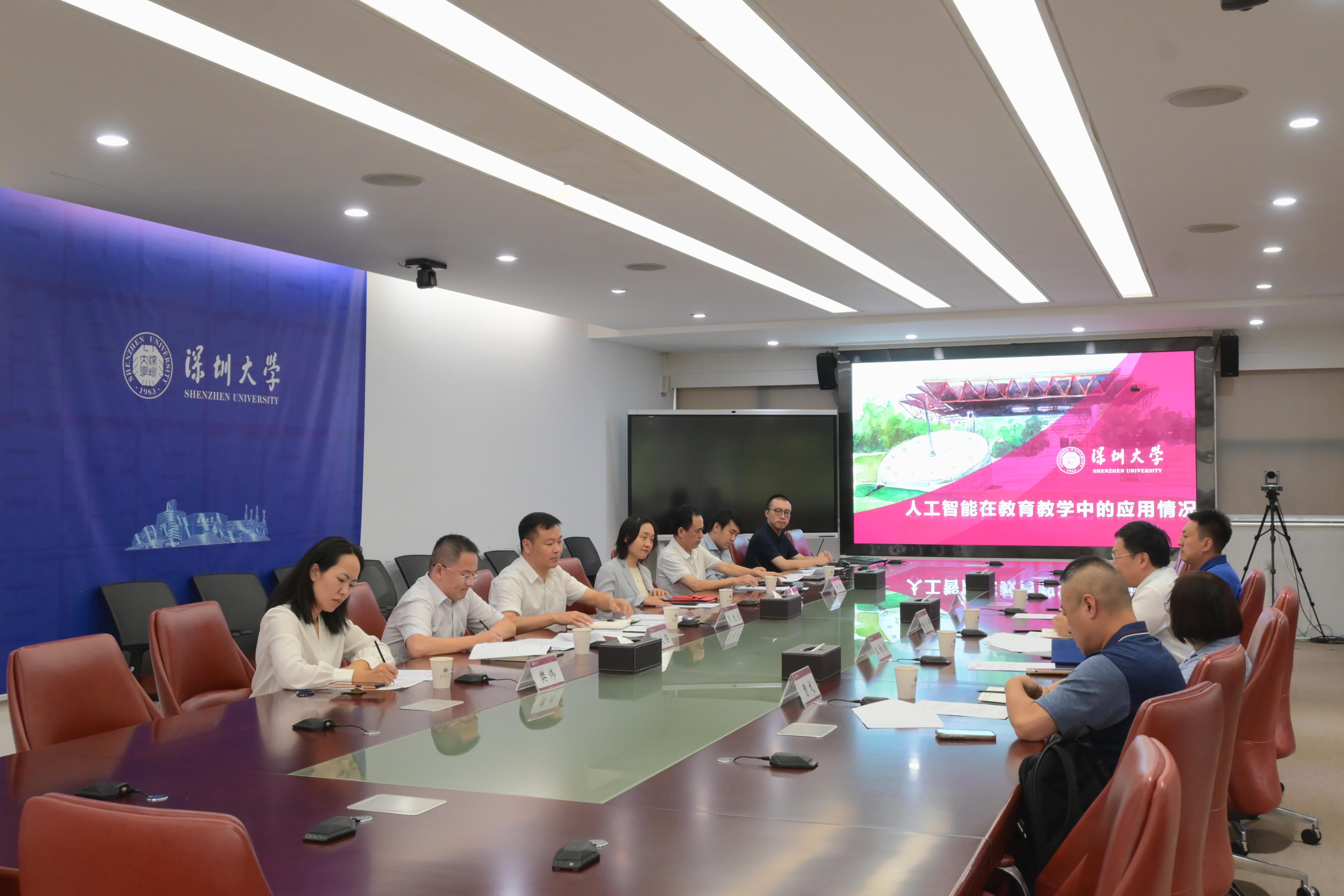 8月22日,教育部中外語言交流合作中心副主任胡志平帶隊(duì)到深圳大學(xué)調(diào)研國際中文教育發(fā)展情況及數(shù)字化中文教學(xué)情況。深圳大學(xué)校長毛軍發(fā)、黨委副書記吳報(bào)水在匯元樓205會(huì)見來賓,隨后雙方在201開展座談會(huì)。教育部中外語言交流合作中心教學(xué)與資源處、財(cái)務(wù)處負(fù)責(zé)人,深圳大學(xué)國際交流與合作部、國際交流學(xué)院、信息中心、KAUST(沙特阿卜杜拉國王科技大學(xué))-SRIBD(深圳市大數(shù)據(jù)研究院)聯(lián)合實(shí)驗(yàn)室負(fù)責(zé)人參加座談。