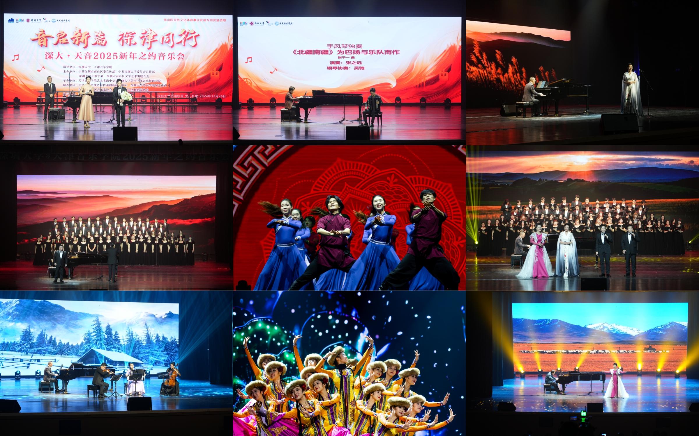 音樂會以“音啟新篇 深津同行”為主題,以其獨到的選曲和演出陣容,融合了中西、跨越時空等一系列音樂節目,濃縮了對經典曲目的深情演繹、對現代音樂元素的創新探索、對中華優秀傳統文化元素的致敬與傳承,更展現了深圳大學與天津音樂學院音樂教育的豐碩成果。