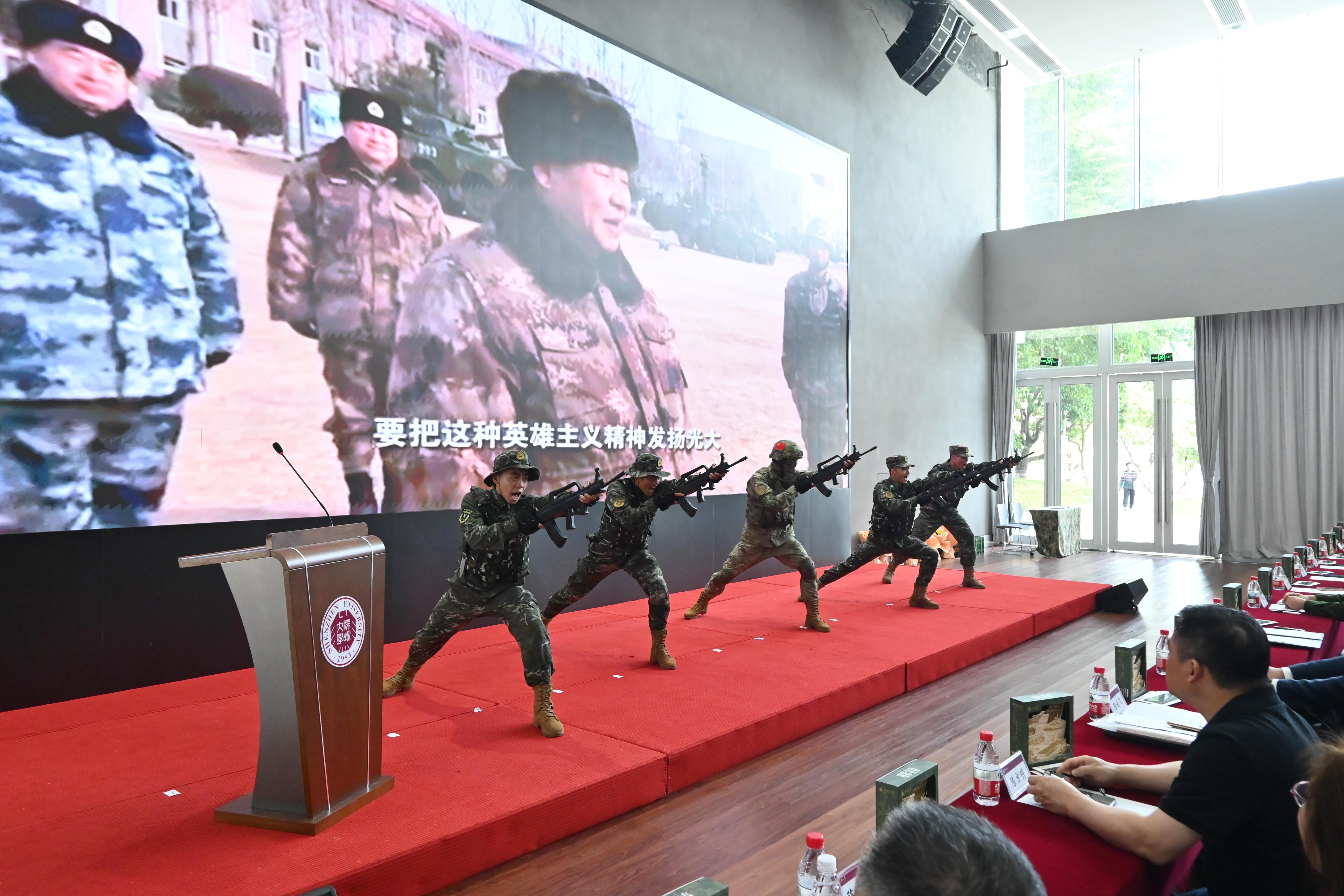 歡送儀式上,五位退伍學生還進行了軍事科目表演。經過多年努力,深圳大學已累計向部隊輸送807名深大學子,其中400余人榮獲“四有”優秀士兵稱號。此次送兵儀式,10名退役歸來的在校生也來到現場。