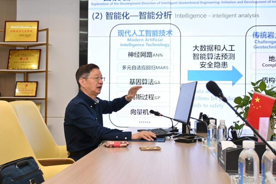 “未來屬于能夠用知識解決復雜問題的人。”在項目現場,陳湘生院士以《從智能巖土工程探索到數智土木工程的思考》為題,開展現場教學。從土木工程的三次飛躍談起,陳湘生展望了大數據驅動、人工智能賦能的未來土木工程新圖景。