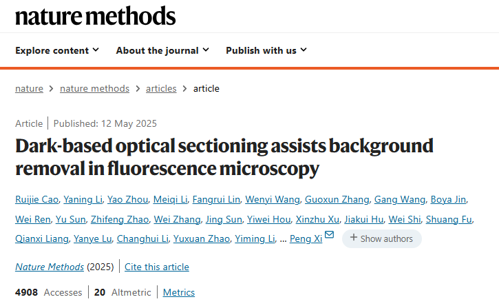 論文信息:Cao, R., Li, Y., Zhou, Y. et al. Dark-based optical sectioning assists background removal in fluorescence microscopy. Nat Methods (2025).https://doi.org/10.1038/s41592-025-02667-6