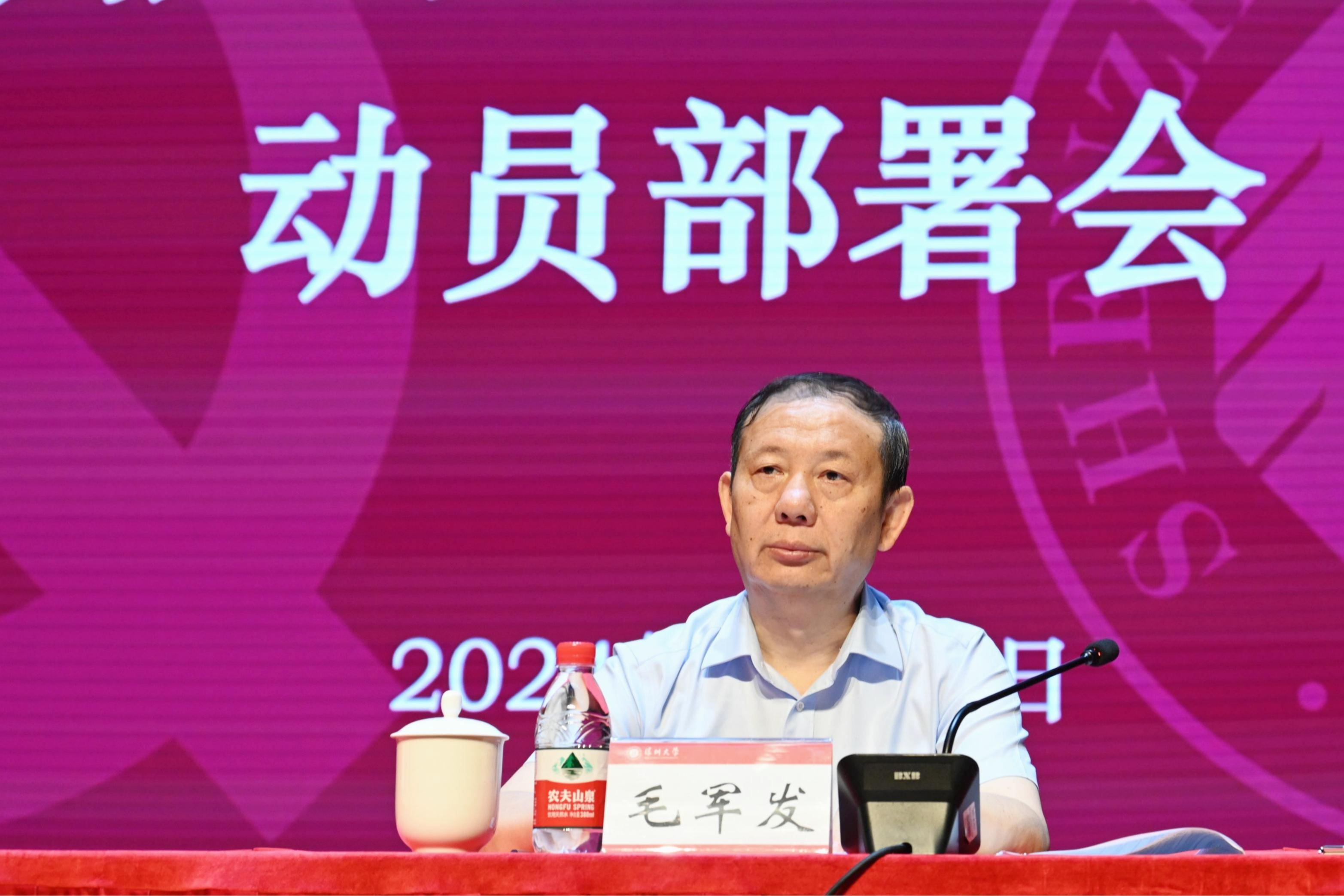 4月19日上午,深圳大學黨紀學習教育動員部署會在粵海校區國際會議廳召開。深圳大學黨委書記李清泉對黨紀學習教育進行全面部署。黨委副書記、校長毛軍發傳達學習中央黨的建設工作領導小組會議精神。黨委副書記、紀委書記王月興對全校開展黨紀學習教育進行具體安排。